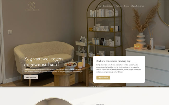 Je Salonsite™ is all-inclusive. Bij je website is inbegrepen: het bouwen, gebruik stockfoto’s, een .nl-domeinnaam, een domeinverhuizing, webhosting, een mailbox van 5GB, onbeperkt aantal e-mailadressen, hulp bij het instellen van de e-mailadressen op je computer/tablet/smartphone, onderhoud, veiligheidsupdates, constante optimalisatie, onbeperkte hulp en ondersteuning, back-ups (6 per dag). Daarnaast betaal je (m.u.v. het instappakket) nooit extra voor advies of aanpassingen.